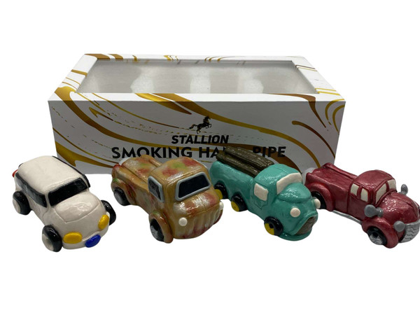Introducing the Stallion 5.5" Clay Truck Hand Pipe, a convenient 4-count box perfect for personal use or sharing. These pipes measure 5.5 inches in length, making them portable and easy to handle. Whether you're a seasoned smoker or new to the scene, these pipes are a reliable and economical choice.